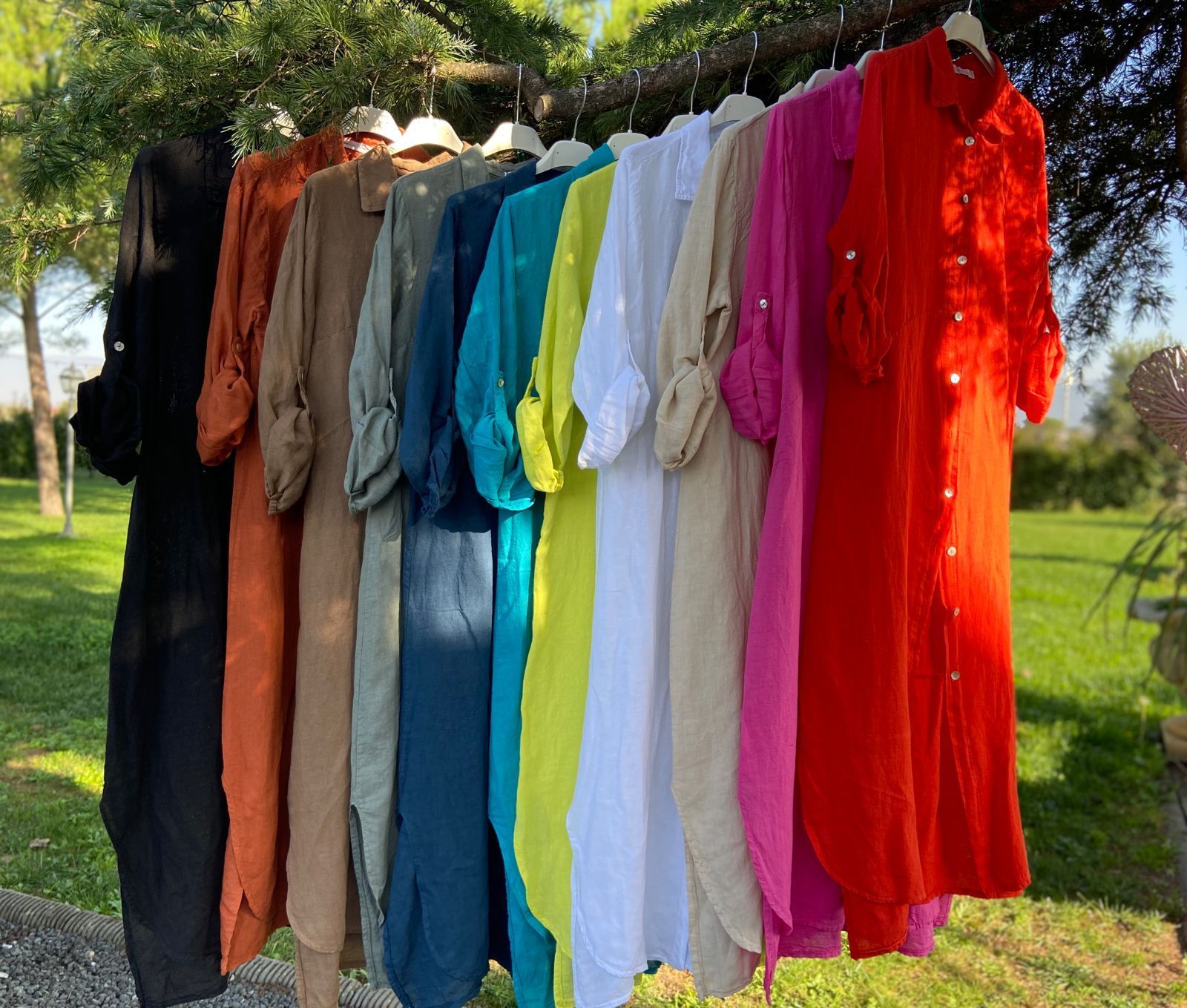80% linen, 20% viscose. One size. Made in Italy