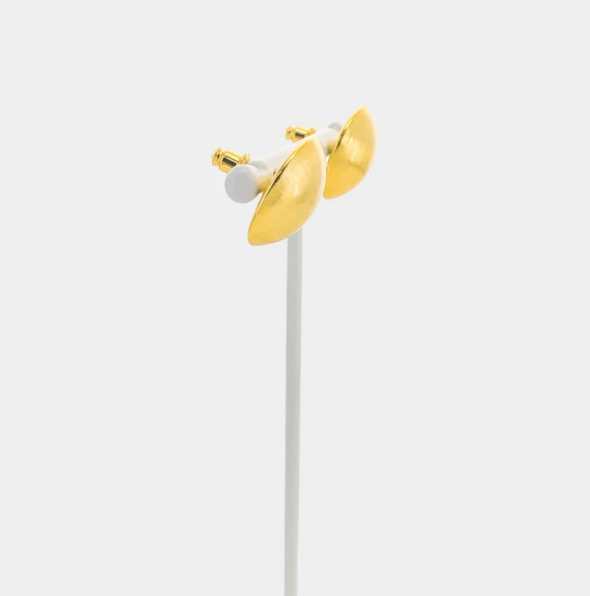 Matte brushed stud push back earrings. Slide the earring post into your ears and secure it with the push back backing.