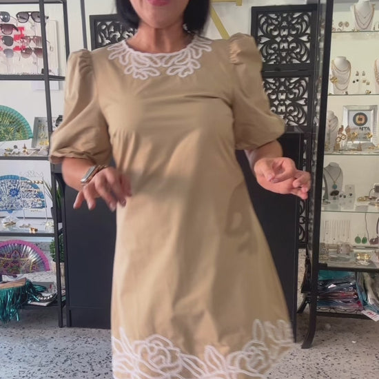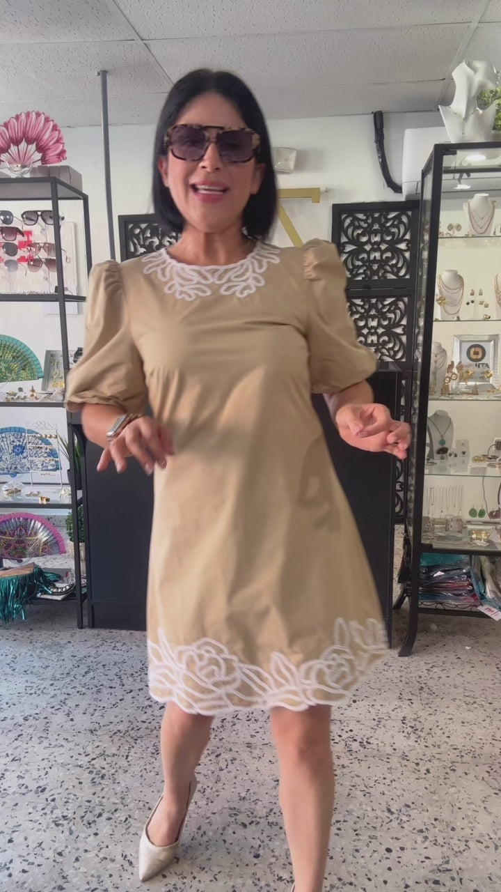 Self 100% cotton lining 100% rayon. I’m wearing a size small.