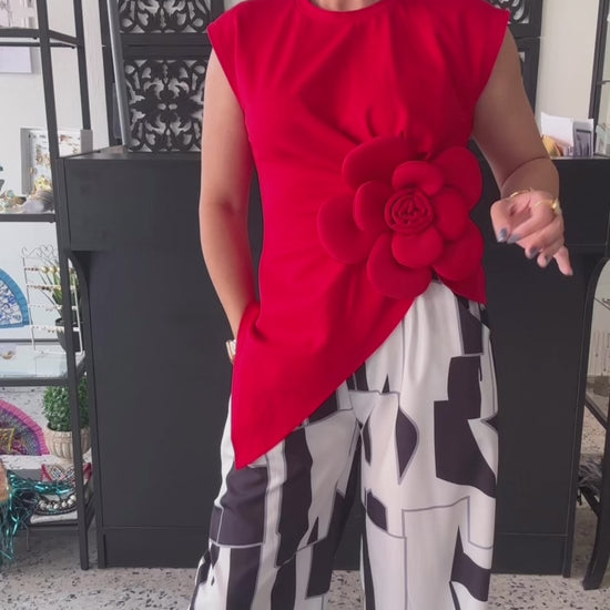 Wearing a size small. 60% rayon 35% Nylon 5% spandex.